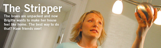 Brigitte needs a table for her dinner party. What better way to find one than to scrounge around in the pile of stuff the previous owners of your house left behind in the garage? As luck would have it, they left an old table. It’s in rough shape, but nothing a little elbow grease can’t fix. Right? In other Avon Lane adventures, Brigitte’s lovely paw “prints,” a housewarming gift from her dog Torchy, get a place of honour in the dining room and Brigitte shows us how she lights up a room - and not just with her mega-watt smile and wicked sense of humour!