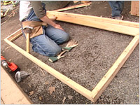 - 9 It’s time to install the “framing” piece on the bottom. Screw a 2 x 2 piece of wood along the edge of the bottom fence rail. The fence boards will be screwed into this later. (see fig. G)