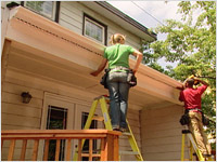 - The next step is to install a “drip edge” around the edges. This protects the cut edge of the plywood and encourages water flow into the eaves trough. (see fig. J)